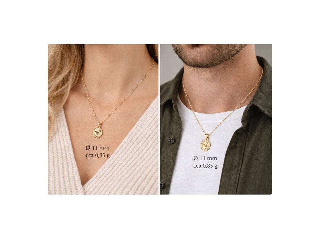 Přívěšek je vhodný jako osobní symbol, dárek ke znamení zvěrokruhu nebo drobný zlatý šperk s významem, který zůstává nadčasový.