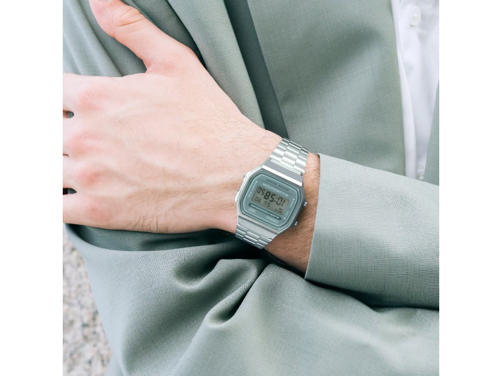 Model A168WA-3AYES je perfektním doplňkem pro každého, kdo má rád military styl, ale nechce se vzdát elegance a jednoduchosti retro designu. Hodinky jsou lehké, pohodlné a díky nastavitelné sponě padnou na každé zápěstí. Je to osvědčená klasika v novém, neokoukaném kabátě.