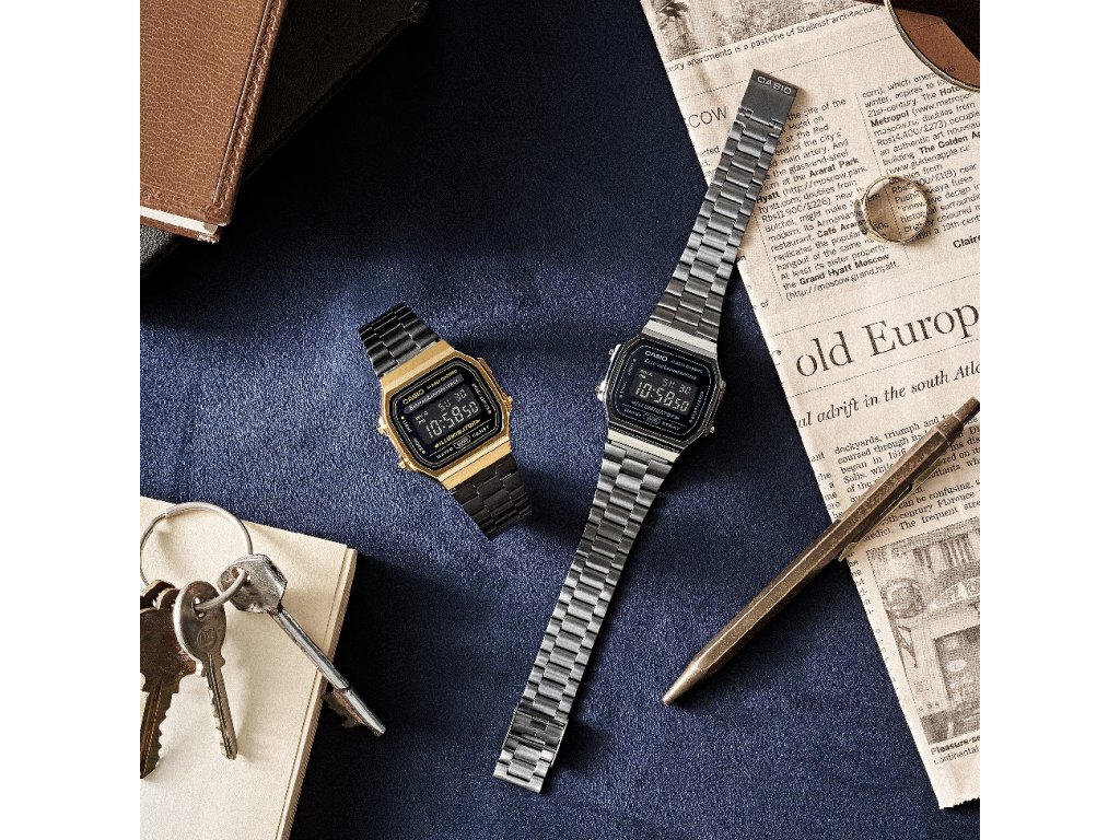 Model A168WEGB-1BEF je ideální volbou pro ty, kteří chtějí klasiku, ale nebojí se vystoupit z davu. Zlaté pouzdro krásně kontrastuje s černým náramkem a inverzním displejem, což hodinkám dodává punc jedinečnosti. Jsou to perfektní unisex hodinky, které skvěle doplní formální i volnočasový outfit.