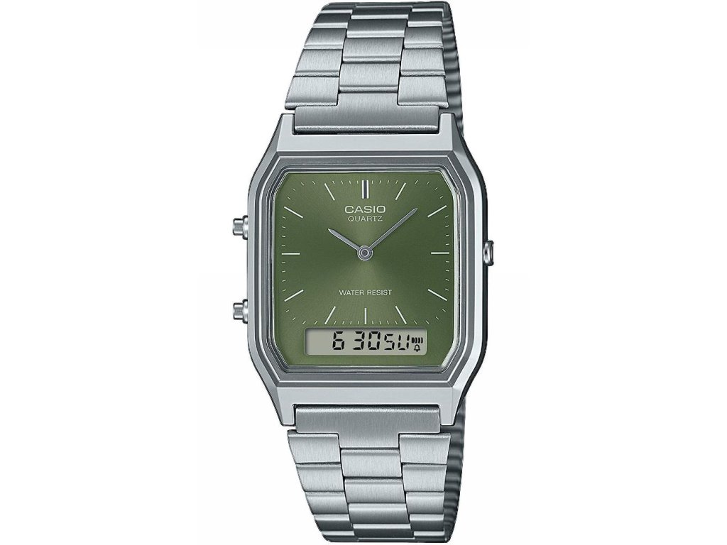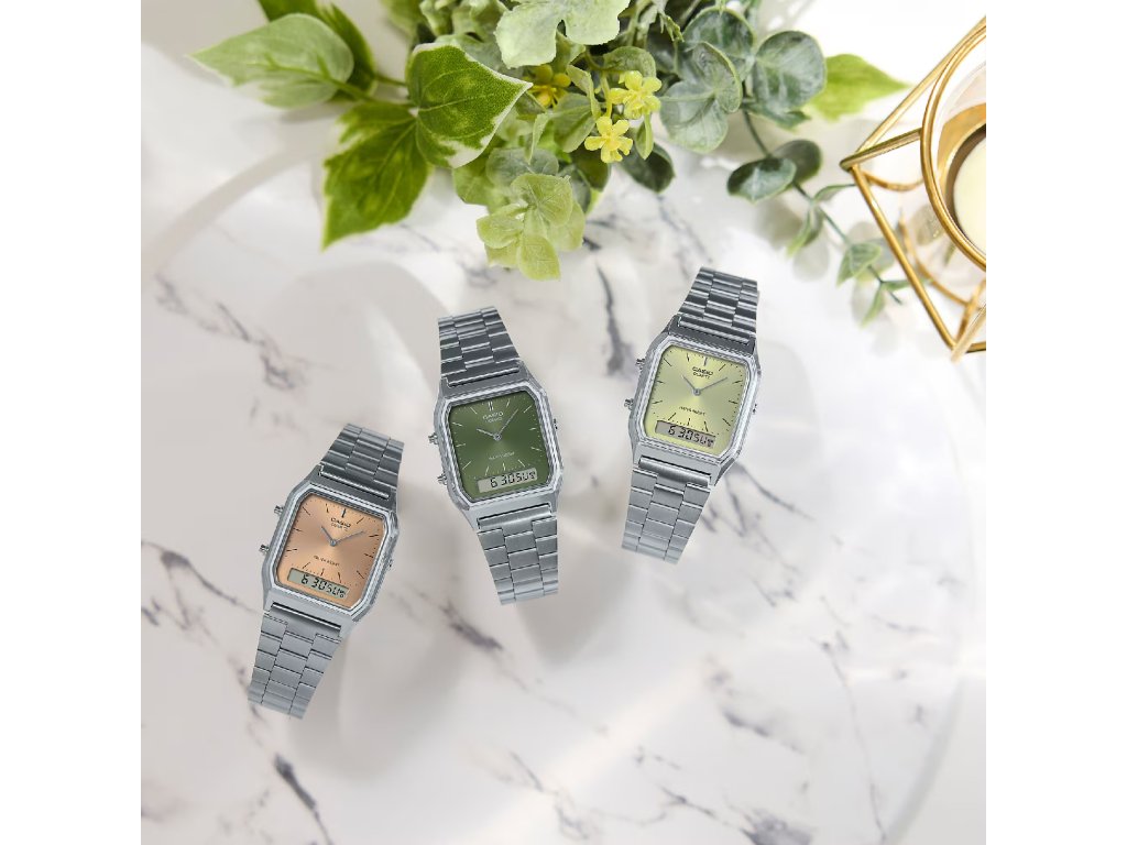 Casio AQ-230A-3AMQY kombinují tradiční analogové ručičky s digitálním displejem, který přidává moderní funkce a praktičnost. Díky této kombinaci vzniká univerzální retro-styl, který působí elegantně, čistě a velmi nadčasově. Hodinky jsou lehké, pohodlné a díky svému tvaru vhodné jak pro muže, tak pro ženy.