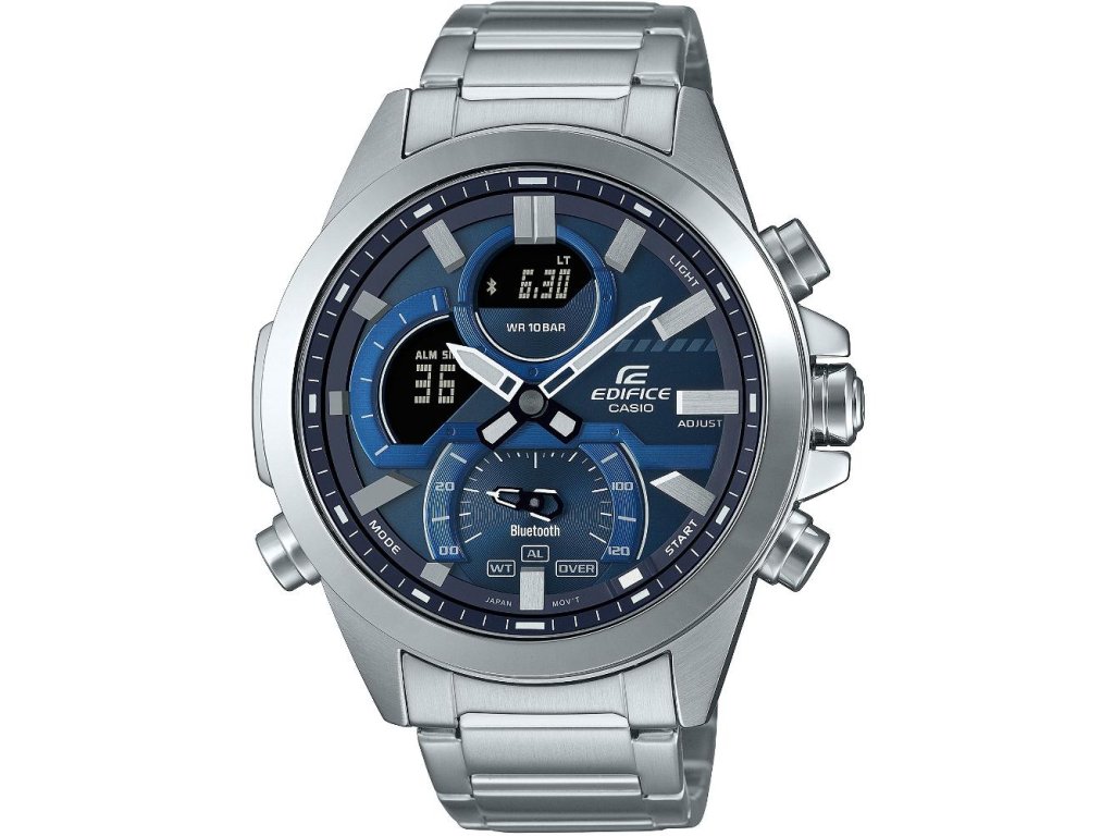 Casio Edifice ECB-30D-2A jsou hodinky stvořené pro moderního muže, který se pohybuje mezi pracovními schůzkami a volnočasovými aktivitami. Jejich sebevědomý vzhled definuje ostře řezaná osmihranná luneta, která dodává klasickému ocelovému provedení moderní a architektonický ráz. Působivý ciferník v sytě modré barvě s horizontální texturou pak podtrhuje celkovou eleganci a zajišťuje perfektní čitelnost.