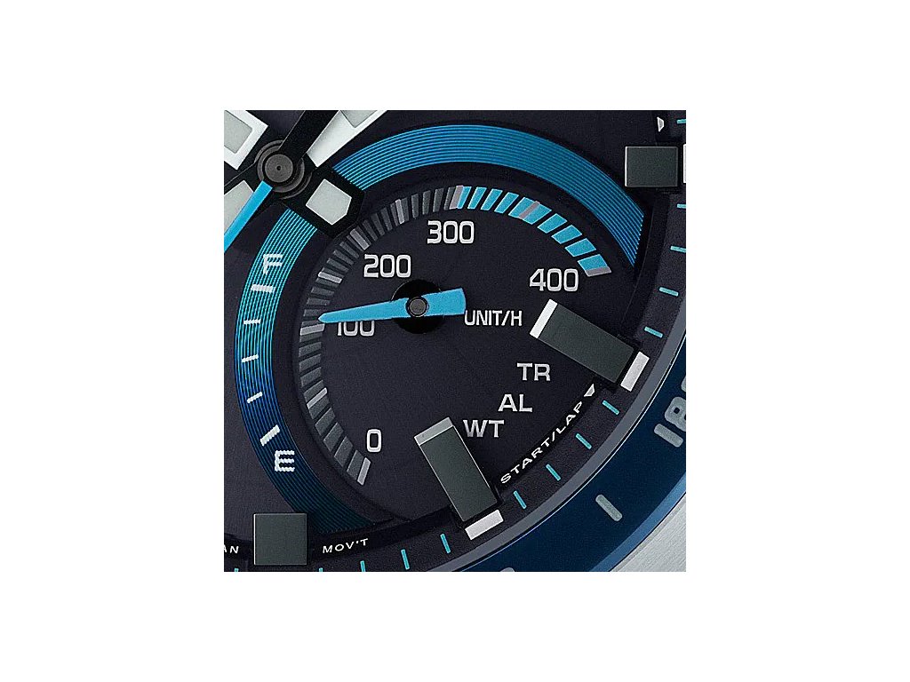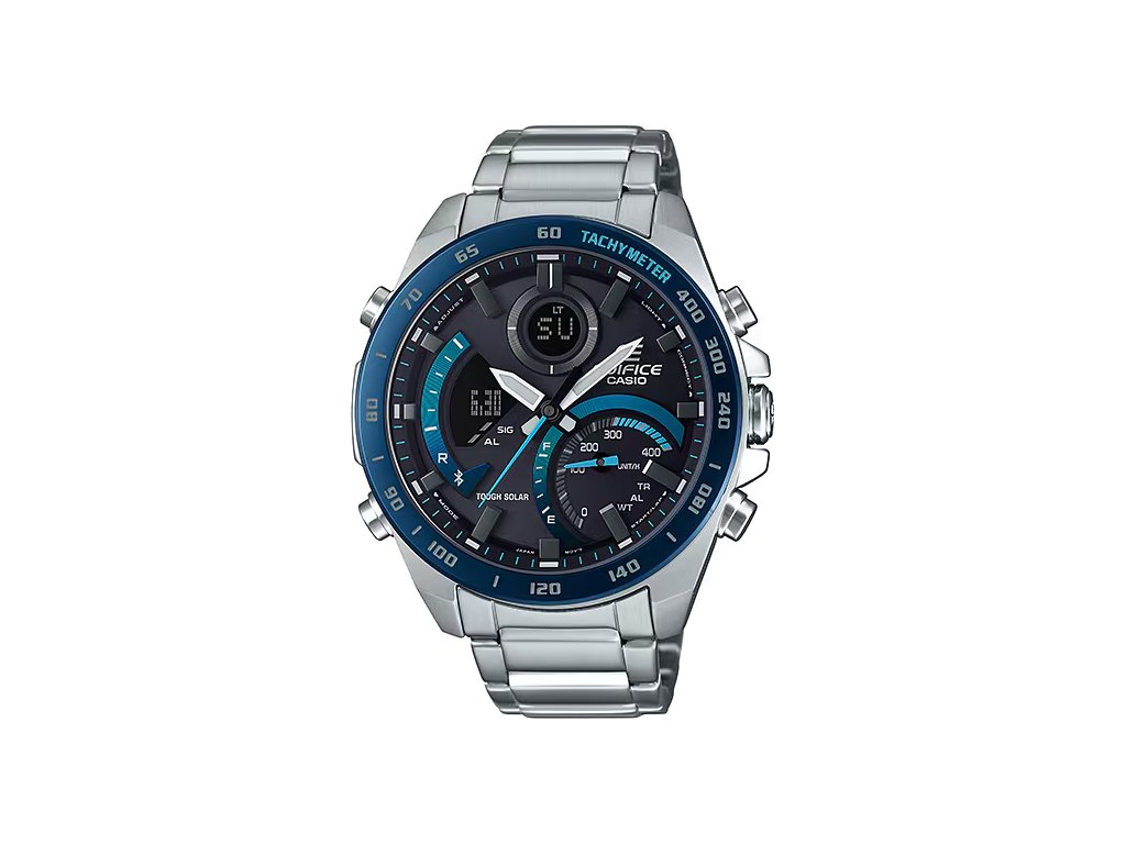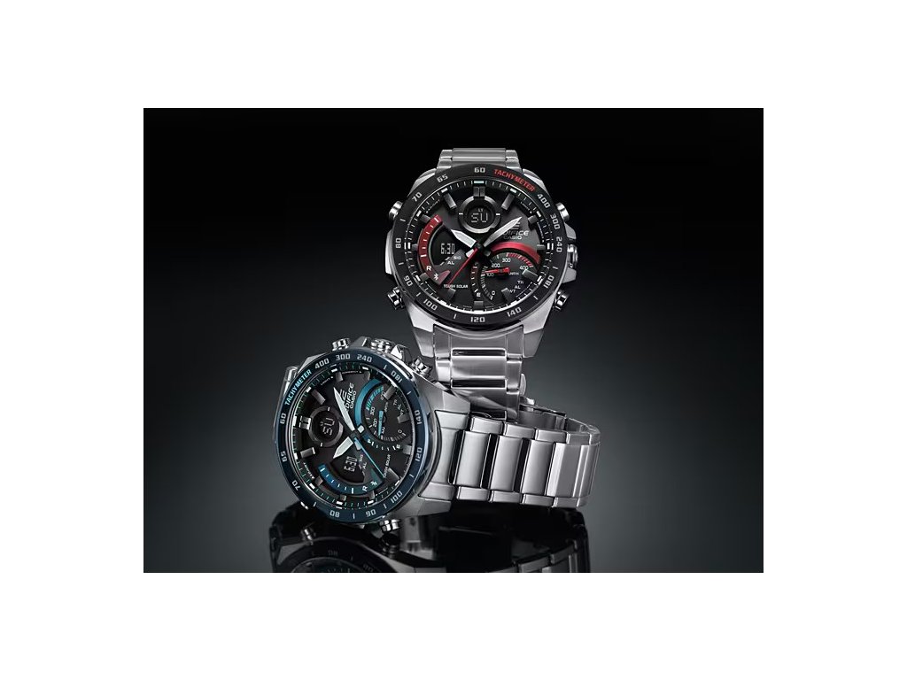 Casio Edifice ECB-900DB-1B je dokonalou ukázkou toho, jak se moderní technologie snoubí s designem inspirovaným motorsportem. Tento analogově-digitální chronograf je nabitý funkcemi, které jsou zde podtrženy elegantními modrými akcenty na ciferníku. Právě tyto detaily dodávají hodinkám, jejichž vzhledu dominuje výrazná černá luneta s tachymetrem, jedinečný a sofistikovaný charakter.