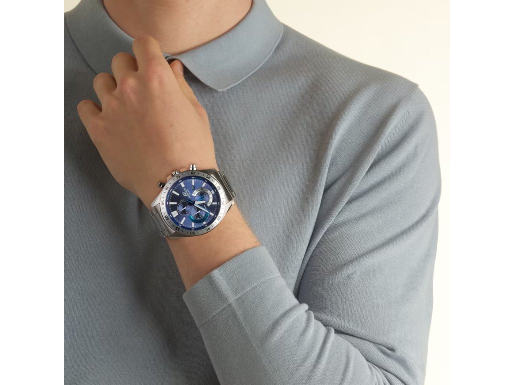 Casio Edifice EFV-620D-2AV přináší charakter a výrazný styl inspirovaný motorsportem, který zaujme na první pohled. Masivní pouzdro, čitelný modrý ciferník se třemi subciferníky stopek a robustní nerezový tah vytvářejí hodinky, jež nejsou jen módním doplňkem, ale spolehlivým nástrojem. Minerální sklíčko chrání před oděrkami, nerezová konstrukce zajišťuje výdrž a vodotěsnost do 100 metrů dovoluje hodinky nosit při dešti i plavání. Tento model je ideální pro každodenní nošení, pro neformální i sportovní příležitosti, kde chcete být vidět.