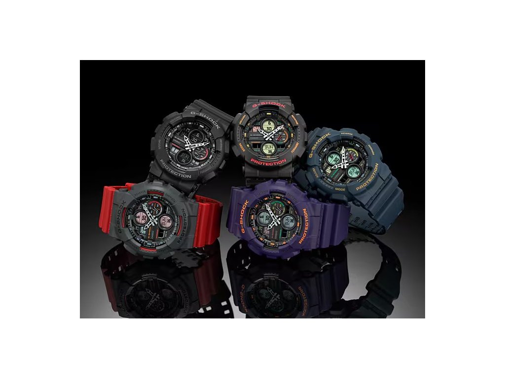 Casio G-Shock GA-140-1A1 je hodinkový model, který spojuje retro vzhled s vysokou úrovní odolnosti a funkčnosti. Vychází z ikonického pouzdra GA-100, ale přidává inovativní design ciferníku inspirovaný stereo komponenty a přenosnými hudebními přehrávači z 90. let. Robustní konstrukce, silné barvy a detaily dodávají hodinkám silný charakter, který zaujme jak ve městě, tak při outdoorových aktivitách.