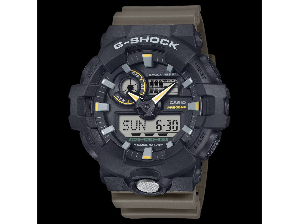 Hledáš hodinky, které nejen vypadají drsně, ale zvládnou i každodenní výzvy? Casio G-Shock GA-710TU-1A3 mají silný charakter stále připravený na akci. Béžový nebo olivově zelený pásek v kombinaci s černým ciferníkem přidává styl utility, zatímco robustní konstrukce z pryskyřice zaručuje odolnost proti nárazům a výtlakům. LED osvětlení „Super Illuminator“ zajišťuje čitelnost ve tmě, světový čas ti otevře možnost mít pod kontrolou čas kdekoliv, stopky i časovač přidávají praktickou stránku a pět alarmů tě udrží včas připraveného. Hodinky mají impozantní velikost a přesto jsou pohodlné – pro ty, kteří chtějí, aby hodinky byly společníkem i v náročných podmínkách.