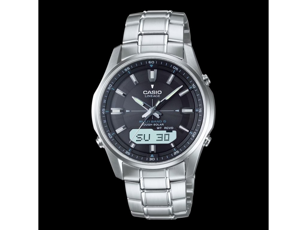Casio LCW-M100DSE-1A z řady Lineage / Wave Ceptor představují ideální spojení klasického stylu a moderních technologií. Elegantní ocelové pouzdro se safírovým sklíčkem chrání vysoce přesný radiově řízený stroj, který se automaticky synchronizuje pomocí signálu Multi-Band 6. Díky systému Tough Solar se hodinky dobíjejí světlem, a proto se nemusíš starat o výměnu baterie. Kromě základních funkcí nabízí také světový čas, stopky, časovač, alarm a plně automatický kalendář.