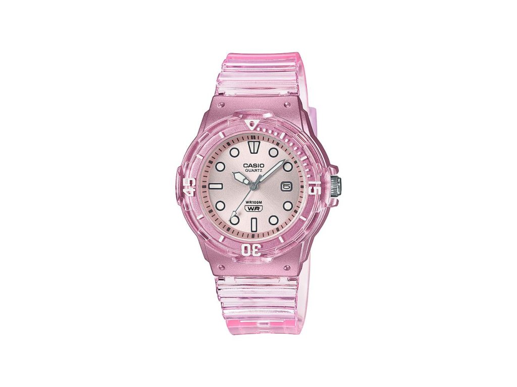 Model LRW-200HS-4EVEF je inspirován designem potápěčských hodinek a je určen pro aktivní ženy a dívky. Nabízí vysokou vodotěsnost, praktickou otočnou lunetu a skvěle čitelný ciferník. To vše v lehkém a odolném pryskyřicovém pouzdře v bílé barvě s růžovými detaily.