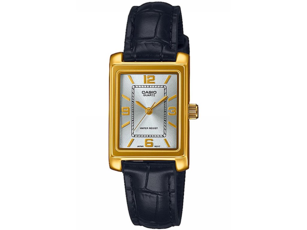 Casio LTP-1234PGL-7A2 zaujmou svým jemným, elegantním designem: zlacené obdélníkové pouzdro v kombinaci s koženým řemínkem tvoří nadčasový a decentní vzhled, který se hodí k formálním i ležérním outfitům. Analogový ciferník je čistý a přehledný, s jednoduchými ručičkami pro snadné odečítání času.