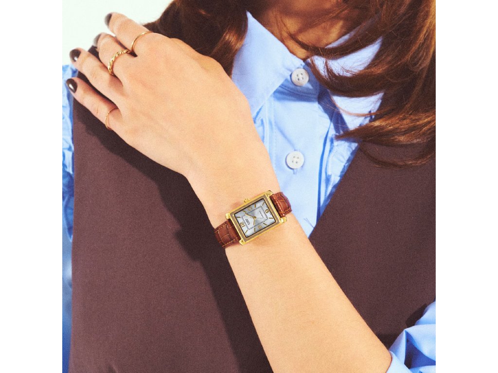 - Nadčasový a elegantní design: Obdélníkové pouzdro a čistý bílý ciferník se hodí ke každému outfitu a příležitosti.
