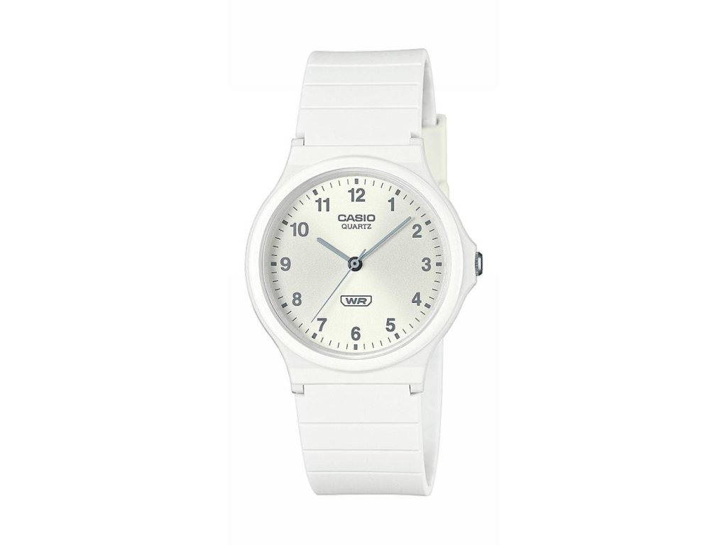 Casio MQ-24B-7B představují klasiku mezi jednoduchými analogovými hodinkami. Jsou velmi lehké, pohodlné a nenápadné, takže se hodí do práce, do školy i na volný čas. Pryskyřičné pouzdro a pásek zajišťují nízkou hmotnost a příjemné nošení po celý den.