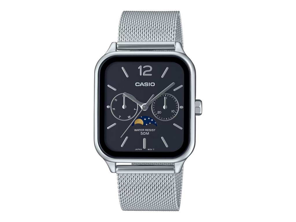 Model Casio MTP-M305M-1AV kombinuje klasický vzhled s dekorativním prvkem – ukazatelem fází měsíce (moon phase). Je ideální pro ty, kteří chtějí hodinky s charakterem, ale přitom v decentním provedení.
